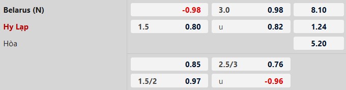Trong 5 trận đấu gần nhất của Belarus, đã có tổng cộng 22 bàn thắng được ghi (trung bình 4,4 bàn/trận), trong khi con số của Hy Lạp là 21 bàn (trung bình 4,2 bàn/trận). Nhìn vào trận đối đầu gần nhất giữa hai đội, chỉ có tổng cộng 6 bàn thắng được ghi (trung bình 6 bàn/trận). Dựa trên số liệu này, khả năng trận đấu có trên 3 bàn thắng là rất cao.
