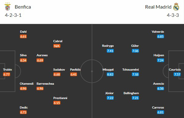Real Madrid vừa có màn thị uy sức mạnh ở lượt trận đấu gần đây nhất tại đấu trường UEFA Champions League. Cụ thể, họ vùi dập đội khách Monaco với tỉ số 6-1. Qua đó, đội bóng thủ đô Madrid vươn lên vị trí thứ 3 tại bảng xếp hạng ở vòng phân hạng UEFA Champions League. Với sức mạnh đó, đoàn quân của ông Alvaro Arbeloa có lý do để tự tin hành quân đến sân của Benfica.
