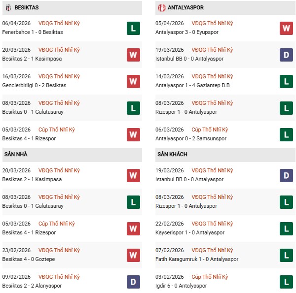 - Besiktas thắng 5, hòa 3, thua 2 trong 10 trận gặp Antalyaspor gần đây.