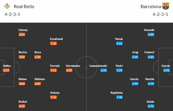Ít nhất 2 bàn hiệp 1: Lịch sử đối đầu chứng kiến 4/6 trận gặp nhau gần nhất giữa đôi bên có từ 2 bàn trở lên trong 45 phút đầu tiên. 6/8 trận sân nhà gần đây của Betis cùng 12/13 trận vừa qua của Barcelona đều xuất hiện ít nhất 2 lần lưới rung trước giờ nghỉ.