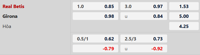 Chẵn bàn thắng: 3/4 trận đối đầu gần nhất giữa Betis vs Girona có tổng bàn thắng chia hết cho 2. Ngoài ra, 8/10 trận vừa xong của Betis và 6/10 trận vừa qua của Girona đều chứng kiến điều tương tự.