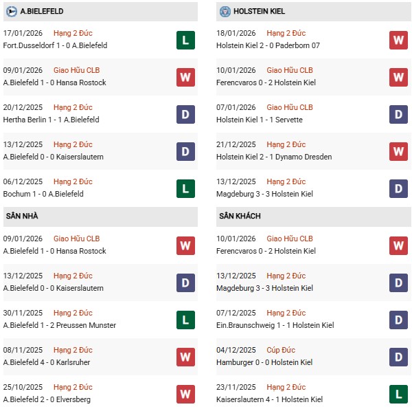- Trên sân nhà, Bielefeld thắng 3, thua 1 trước Holstein Kiel.