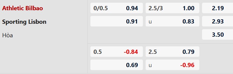 Sporting Lisbon thắng châu Á hiệp 1: Các cầu thủ khách đang có thành tích toàn thắng châu Á 7 trận liên tiếp gần đây trong 45 phút đầu tiên. Với Bilbao, đội chủ nhà thua châu Á 6, hòa 2 trong 8 trận gần nhất trên mọi đấu trường trước giờ nghỉ.
