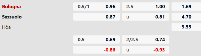 Sassuolo ghi bàn hiệp 1: Sassuolo ghi ít nhất 1 bàn trong hiệp 1 ở 5/7 trận gần nhất. Ngoài ra, Sassuolo cũng xuyên thủng lưới Bologna trong hiệp 1 ở 4/5 trận đối đầu vừa qua giữa đôi bên. Vì thế, nhiều khả năng Sassuolo sẽ ghi tối thiểu 1 bàn trong 45 phút đầu tiên của trận này.