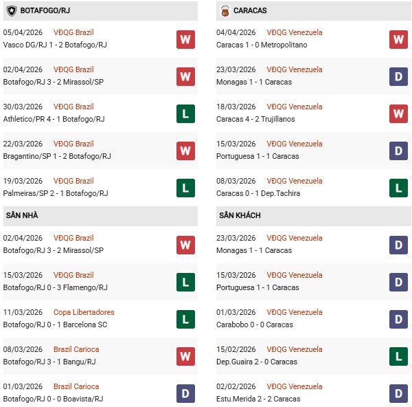 Nhận định Botafogo vs Caracas, 05h00 ngày 10/4, bảng E Copa Sudamericana, sân Nilton Santos. Caracas tuy khó chịu nhưng lại thiếu khả năng bùng nổ, đặc biệt khi phải làm khách nên khó tạo ra bất ngờ trước Botafogo.