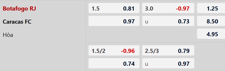 Botafogo chấp 1 1/2 bàn là mức kèo khá cao nhưng hợp lý khi họ có lợi thế sân nhà và trình độ vượt trội. Caracas tuy khó chịu nhưng lại thiếu khả năng bùng nổ, đặc biệt khi phải làm khách. Với hàng công đang có phong độ tốt, Botafogo đủ khả năng thắng cách biệt.