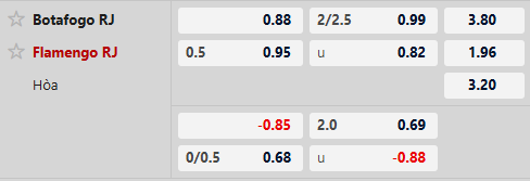 Flamengo vẫn được đánh giá cao hơn và chấp 1/2 bàn. Tuy nhiên, phong độ hiện tại của đội khách đang khiến NHM bất an. Bởi họ chỉ giành được 1 chiến thắng trong 5 trận gần nhất trên mọi đấu trường. Ngược lại, Botafogo cho thấy sự ổn định đáng nể trên sân nhà với chuỗi 5 trận bất bại liên tiếp. Với những gì hai đội thể hiện thời gian qua, lựa chọn kèo Botafogo rõ ràng là phương án đáng cân nhắc hơn.
