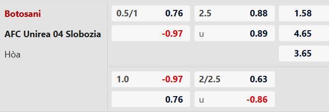 Thông tin tỷ lệ kèo Botosani vs Unirea Slobozia: