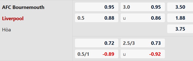 Nhiều bàn thắng: 5/6 trận gần đây của Bournemouth đều có từ 4 bàn thắng trở lên. 3/4 trận sân khách vừa qua của Liverpool cùng 5/6 trận đối đầu gần nhất giữa hai đội cũng có tối thiểu 3 tình huống làm bàn.