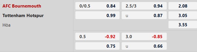 Tối đa 1 bàn hiệp 1: 5 lần gặp giữa 2 đội gần đây chỉ có nhiều nhất 1 bàn thắng trong hiệp 1. 3/4 trận sân nhà gần đây của Bournemouth và 5/7 trận vừa qua của Tottenham xảy ra tình trạng tương tự.