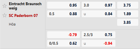 Nhìn vị trí của hai đội trên bảng xếp hạng hiện tại, hoàn toàn dễ hiểu khi Paderborn đang là đội được đánh giá cao hơn với mức chấp 1/2 bàn. 10 lần chạm mặt gần nhất, Braunschweig thắng 4 trận và hòa 4 lần nhưng với phong độ hiện tại, khả năng rất cao đội bóng này sẽ thất thủ ngay trên chính thánh địa của mình.