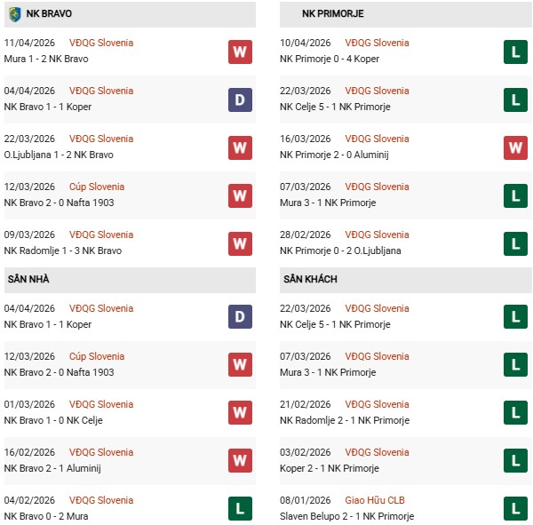 - Trên sân nhà, Bravo toàn thắng trong 3 trận trước Primorje.