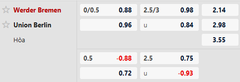 Union Berlin đang trở lại mạnh mẽ trong thời gian gần đây và khả năng cao sẽ không rời sân Bremen trắng tay. Mặt khác, Bremen chỉ thắng châu Á 3/10 trận sân nhà chính thức gần nhất. Trong khi đó, Union Berlin thắng châu Á 7/9 trận sân khách chính thức vừa qua.