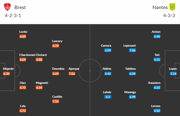 Brest mới giữ sạch lưới 1 trận mùa này, lại còn trên sân khách chứ không phải tại sào huyệt. Trong khi đó, Nantes đã ghi được tổng cộng 4 bàn sau 2 trận gần nhất, một sự cải thiện đáng khích lệ nếu biết rằng 4 vòng đầu tiên, họ chỉ nổ súng đúng 1 lần. Như vậy có cơ sở để chờ đợi cuộc đấu sôi nổi, nhất là khi 2/3 màn chạm trán vừa qua giữa hai đội cùng 5/7 trận sân nhà mới đây thuộc Ligue 1 đều khép lại với không dưới 3 pha lập công.