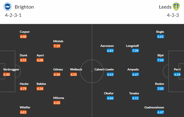 Brighton tuy thua 2 trận liên tiếp gần đây, nhưng điều đó không có nghĩa là họ kém cỏi. Bởi 2 đối thủ đánh bại Chim mòng biển đều rất mạnh gồm đội đang dẫn đầu giải Ngoại hạng Anh Arsenal và “gã khổng lồ” đang tỉnh giấc MU. Xét một cách công bằng, họ xứng đáng được đánh giá cao hơn đối thủ Leeds cuối tuần này.