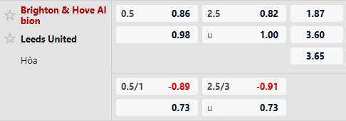 Tối thiểu 3 bàn thắng: 8/10 trận đấu của Brighton gần đây đều xuất hiện ít nhất 3 bàn thắng. Tình trạng tương tự xảy ra ở 4/5 trận đấu vừa qua của Leeds.