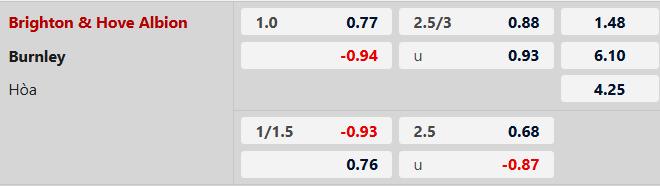 Tối thiểu 1 bàn hiệp 1: 4/5 lần gặp giữa 2 đội gần đây đều có từ 1 bàn thắng trở lên trong hiệp 1. Tình trạng tương tự xảy ra ở 6/8 trận gần đây của Brighton và 13/16 trận mới nhất của Burnley.