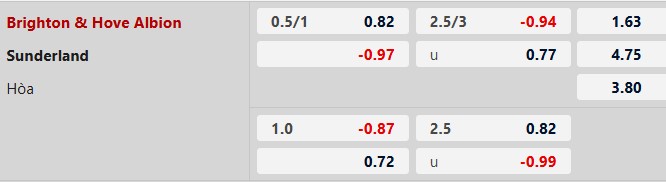 Brighton ở cửa trên với mức chấp 3/4 bàn, phản ánh lợi thế sân nhà cùng phong độ ổn định tại Amex. Dù Sunderland đang xếp trên về mặt điểm số, nhưng sự khác biệt về khả năng chơi sân nhà – sân khách là khá rõ ràng. Với tỷ lệ này, lựa chọn Brighton -3/4 được đánh giá là hợp lý khi đội chủ nhà có nhiều cơ hội giành chiến thắng.