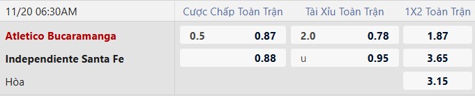 Thông tin tỷ lệ Bucaramanga vs Santa Fe: