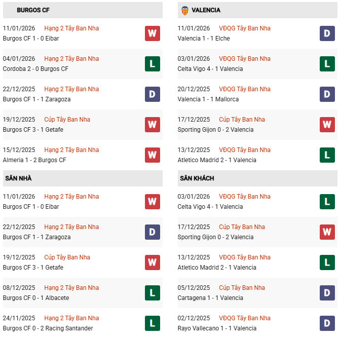 Đẳng cấp và truyền thống: Valencia là đội bóng đến từ La Liga với 8 lần vô địch Cúp Nhà vua, trong khi Burgos chỉ là đại diện đang chơi tại giải Hạng 2 (Segunda Division). Sự chênh lệch về thực lực là điều rõ rệt.