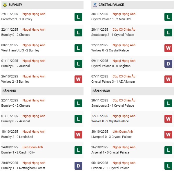 - Trên sân nhà, Burnley thắng 4, thua 4 trước Crystal Palace.