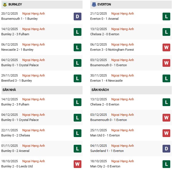 - Burnley thắng 3, hòa 1, thua 6 trong 10 trận gặp Everton gần đây.