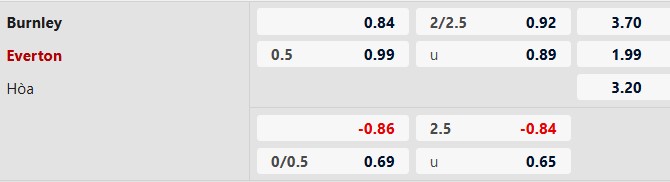 Lẻ bàn thắng: 6/9 trận đối đầu trước đó giữa Burnley vs Everton có tổng bàn thắng không chia hết cho 2. Ngoài ra, 3/4 trận vừa xong của Burnley lẫn 6/9 trận mới đây của Everton đều chứng kiến điều tương tự.