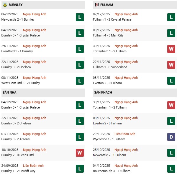 - Trên sân nhà, Burnley thắng 4, hòa 3 trước Fulham.