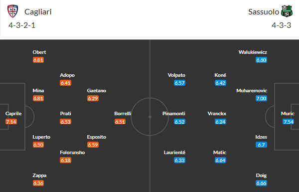 Cagliari chắc chắn muốn nhân cơ hội đụng độ đối thủ dễ chịu Sassuolo để chấm dứt chuỗi 4 trận không thắng (2 hòa, 2 bại) tại Serie A. Trước chuỗi trận này, Cagliari thi đấu khá ấn tượng với 2 trận hòa, 3 chiến thắng và chỉ 1 trận thua ở 6 tận chính thức.