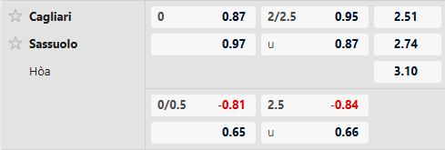 Tỷ lệ kèo hòa được thua xuất hiện trong trận đấu này. Đội nào thắng trận lần này sẽ có cơ hội vươn lên nửa trên BXH Serie A 2025/26. Và với những lợi thế nhất định về đối đầu và sân nhà, nhiều khả năng Cagliari sẽ giành trọn 3 điểm ở trận này.