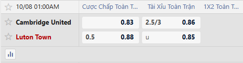 Luton Town được xếp ở cửa trên trận này với mức kèo -1/2 theo handicap. Cambridge United không thể thắng được Luton ngay trên sân nhà từ 2015 tới bây giờ và khả năng cao kịch bản này lại tái diễn.