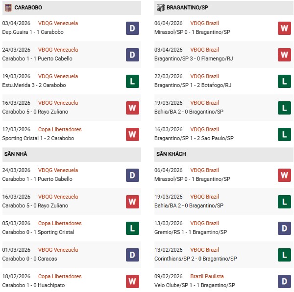 Xét về tương quan, Bragantino được đánh giá nhỉnh hơn về chất lượng đội hình, nhưng phong độ sân khách lại là dấu hỏi lớn. Trong khi đó, Carabobo dù không quá mạnh nhưng lại có lợi thế sân nhà và lối chơi khá khó chịu.
