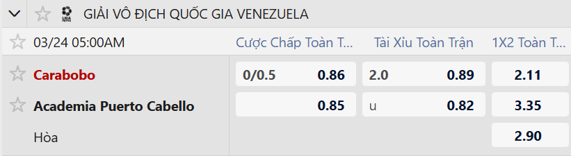 Lựa chọn tốt nhất: Carabobo & Xỉu cả trận