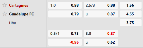 DỰ ĐOÁN: Cartagines 1-1 Guadalupe