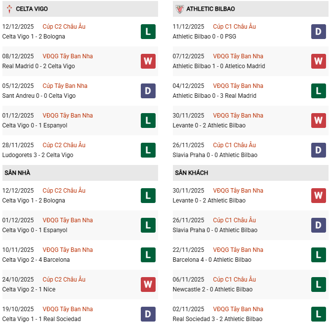 Cuối tuần trước, Celta đã gây tiếng vang tại giải quốc nội bằng chiến thắng 2-0 ngay trên sân Bernabeu trước Real Madrid. Họ đang hướng đến mục tiêu giành 2 chiến thắng liên tiếp tại La Liga. Dẫu vậy, quá khứ đối đầu lại không ủng hộ họ. Celta đã thua 4/5 lần gần nhất gặp Athletic Bilbao, bao gồm cả 2 trận ở La Liga mùa 2024/25.