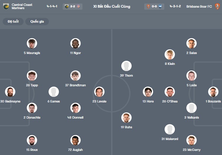 - Central Coast thắng 6, thua 4 trong 10 trận gặp Brisbane Roar gần đây.
