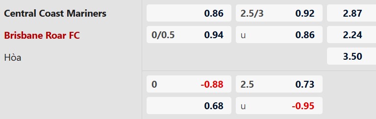 Mốc 2 3/4 bàn phản ánh xu hướng cởi mở của cặp đấu này. Thực tế, 4/5 trận gần nhất của Central Coast có từ 3 bàn trở lên, trong khi hàng thủ của họ thường xuyên để thủng lưới. Phía Brisbane Roar cũng có 2/3 trận gần đây xuất hiện nhiều bàn thắng. Với lối chơi không quá chặt chẽ từ hai phía, khả năng trận đấu nổ tài là khá cao.