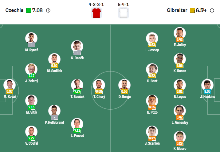 Ngôi sao quan trọng nhất của họ là Patrik Schick với 4 bàn thắng, luôn đóng vai trò mũi nhọn trên hàng công. Hỗ trợ phía sau là Lukáš Červ, người sở hữu 2 đường kiến tạo, giúp lối chơi của CH Séc trở nên đa dạng và sáng tạo. Hàng thủ cũng thi đấu chắc chắn khi chỉ để lọt lưới 8 bàn trong suốt vòng loại (1,14 bàn/trận). Trước đối thủ yếu hơn nhiều như Gibraltar, áp lực phòng thủ dự kiến sẽ không quá lớn.