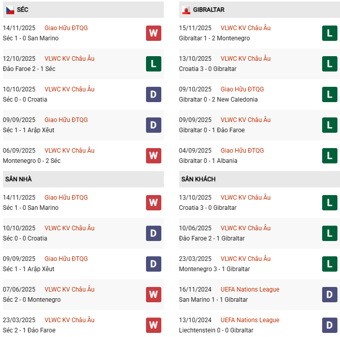 - CH Séc thắng 4-0 trước Gibraltar ở trận đấu lượt đi.