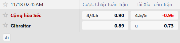 Trong 5 trận đấu gần nhất của CH Séc, đã có tổng cộng 8 bàn thắng được ghi (trung bình 1,6 bàn/trận), trong khi con số của Gibraltar là 10 bàn (trung bình 2 bàn/trận). Nhìn vào trận đối đầu gần nhất giữa hai đội, chỉ có tổng cộng 4 bàn thắng được ghi (trung bình 4 bàn/trận). Dựa trên số liệu này, khả năng trận đấu có trên 3 bàn thắng là rất cao.