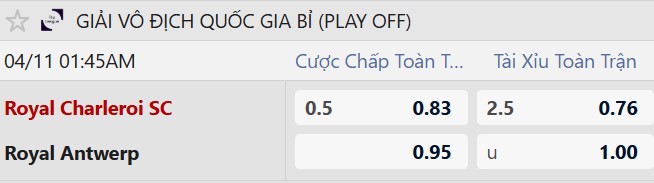 Việc Charleroi được xếp cửa trên với mức chấp 1/2 bàn là khá mạo hiểm nếu nhìn vào phong độ thực tế của hai đội. Chủ nhà đang sa sút rõ rệt cả về tinh thần lẫn chuyên môn, trong khi Antwerp lại tỏ ra khó chịu mỗi khi thi đấu xa nhà. Với sự ổn định hơn cùng lối chơi thực dụng, đội khách nhiều khả năng sẽ giành ít nhất 1 điểm.