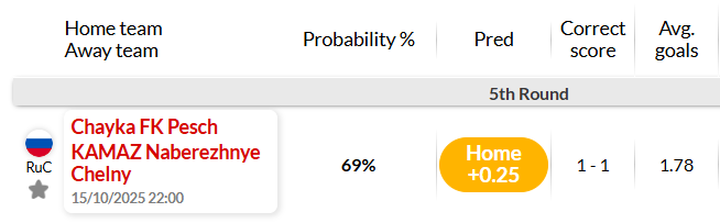 Hai trận gần nhất của KamAZ đều thắng kèo và cũng cần nhấn mạnh rằng 2 lần chạm trán gần nhất giữa hai câu lạc bộ Chayka Pesch đều thua kèo. Vì lẽ đó, có thể đội khách sẽ là một chọn lựa không tồi với nhà đầu tư ở trận đấu này.