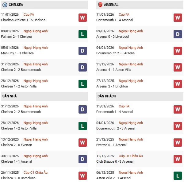 Đáng chú ý, Arsenal đang có chuỗi 13 trận liền ghi bàn trên sân khách, bao gồm cả trận hòa Chelsea 1-1 tại Stamford Bridge hồi tháng 11 năm ngoái. Đây đã là trận đấu thứ 9 liên tiếp Chelsea không thắng nổi Arsenal trên mọi đấu trường. Căn cứ vào thực tế trên, cho dù Chelsea đã khởi sắc sau khi thay tướng, lại có thêm lợi thế sân nhà thì xem ra họ vẫn khó hạ nổi gã hàng xóm thành London.