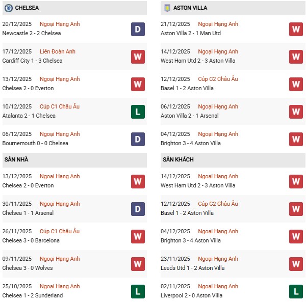 Dự đoán Chelsea vs Aston Villa, 00h30 ngày 28/12, vòng 18 Ngoại hạng Anh, sân Stamford Bridge. Với lợi thế sân nhà, Chelsea vẫn có cơ sở để tin vào một kết quả tích cực, nhưng phong độ thăng hoa của Aston Villa khiến cán cân trở nên mong manh.