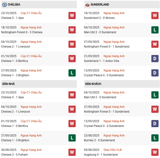 - Trên sân nhà, Chelsea thắng 8, thua 2 trước Sunderland.