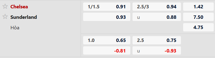Thành công của Sunderland nằm ở điểm tựa hàng tuhr vững chắc thứ 2 toàn giải. Mèo Đen chỉ mới để thủng lưới 6 lần, thống kê ngang bằng Man City và chỉ kém duy nhất Arsenal. 3/5 vòng liên tiếp, Sunderland đều giữ sạch lưới. Do vậy, khó mà tin vào khả năng Chelsea có thể thắng đậm ở trận cầu sắp tới bất chấp việc hàng công của đội chủ nhà đã ghi 16 bàn sau 8 vòng. Thế nên với tỷ lệ tài xỉu 2 3/4, cơ hội để kèo Xỉu xuất hiện vẫn sẽ nhỉnh hơn.