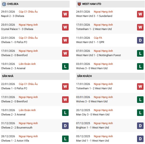 Cần nói thêm, Chelsea thắng 7/10 trận gần nhất khi so tài với West Ham. 23 lần hành quân tới sân Stamford Bridge của Chelsea, West Ham thắng có 2, còn lại thua 16 và hòa 5. Xem ra, West Ham khó tránh khỏi trận thua trước Chelsea ở lần đọ sức sắp tới.