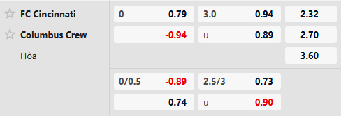 Ở chiều ngược lại, Columbus Crew cũng vừa có thắng lợi 3-1 trước New York Red Bulls. Dù vậy, vấn đề của họ lại nằm ở hàng phòng ngự, tuyến đã để lọt lưới trong 6 trận liên tiếp. Việc phải hành quân đến sân của một đội đang có phong độ cao như Cincinnati sẽ là thử thách lớn với thầy trò HLV Wilfried Nancy.