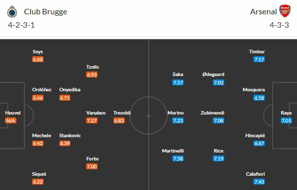 Với Arsenal, đội bóng của HLV Mikel Arteta đã chắc chắn có được một suất tham dự vòng play-off ngay cả trong trường hợp xấu nhất và đang hướng tới chiến thắng thứ 10 liên tiếp tại vòng bảng Champions League, cũng như trận đấu thứ 10 liên tiếp bất bại trước một câu lạc bộ Bỉ. Trong lịch sử, Arsenal chưa bao giờ giành chiến thắng trong 6 trận mở màn của mùa giải Champions League trong lịch sử, và các học trò của Arteta sẽ đến Bruges sau trận thua tại Premier League trước Aston Villa, trận thua chấm dứt mạch 18 trận bất bại và khiến họ phần nào đó mất đi sự tự tin khi chỉ còn hơn Man City 2 điểm trên bảng xếp hạng.