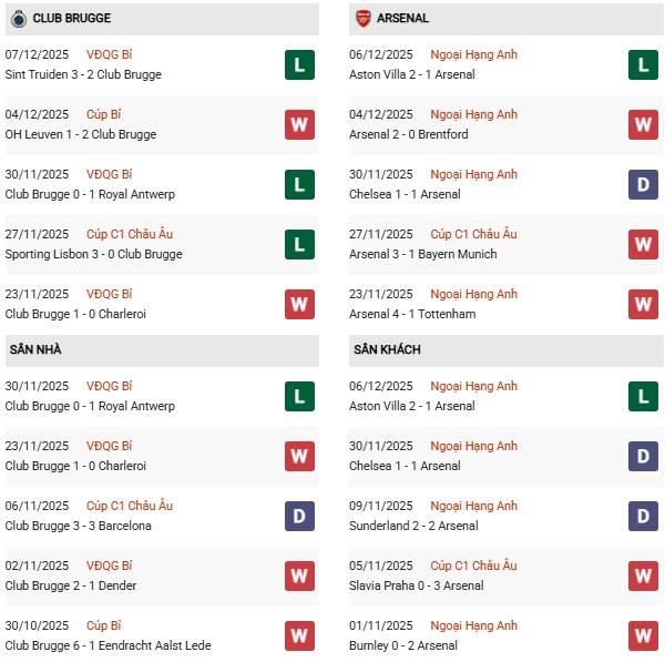 Muốn làm được điều này, Club Brugge cần nhanh chóng cải thiện thành tích bết bát mà họ đang thể hiện với việc để thua 4 và chỉ thắng 2 trong 6 trận gần đây trên mọi đấu trường. Thế nhưng, đây sẽ là nhiệm vụ có thể coi là bất ngờ dù họ được chơi trên sân nhà ở lượt trận này, khi phải tiếp đón độc cô cầu bại Arsenal, đội duy nhất sở hữu thành tích toàn thắng cả 5 trận đã đấu để độc chiếm ngôi đầu bảng với 15 điểm tuyệt đối.